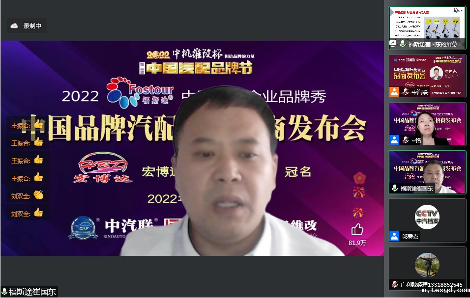 2022中国品牌汽配企业招商发布会举行,达102万个赞!