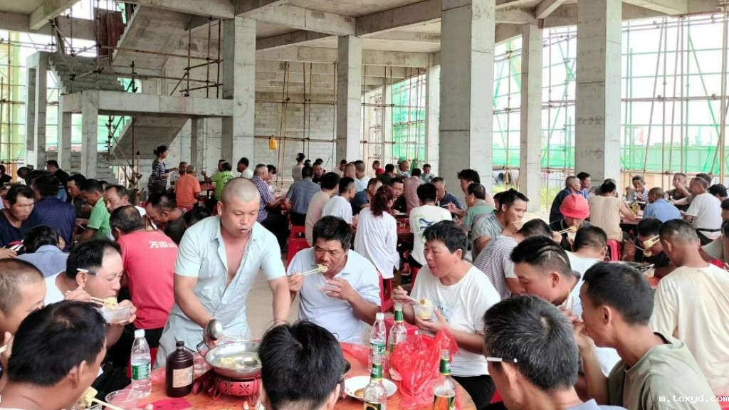 ​       中午在项目现场,航信汽贸城为奋战在一线的工友们准备了丰盛的庆功宴,工友们喝着幸福的喜酒,欢歌笑语话家常,幸福和快乐溢于言表。